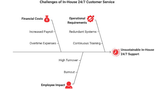 Covering all 24 hours in-house means scheduling night shifts, hiring more staff, and sometimes even paying overtime. This can quickly inflate payroll budgets and for smaller companies, it is often unsustainable.